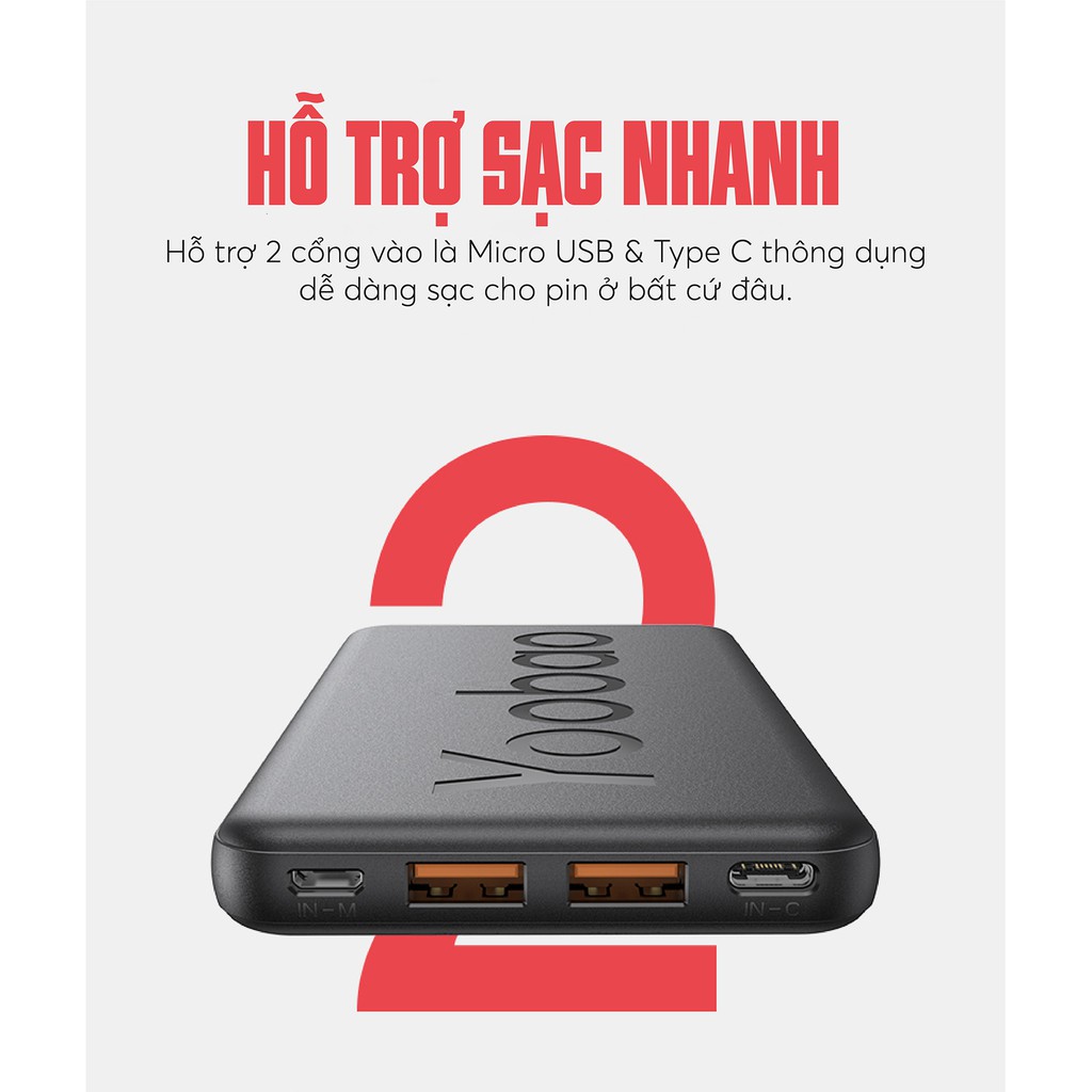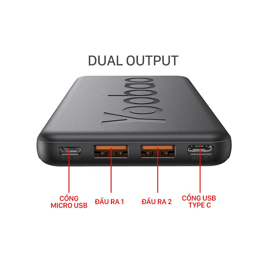 Pin sạc dự phòng chính hãng Yoobao 10000 mAh P10T- 2 cổng USB- Hỗ trợ sạc 2 máy- Có đèn LED báo dung lượng
