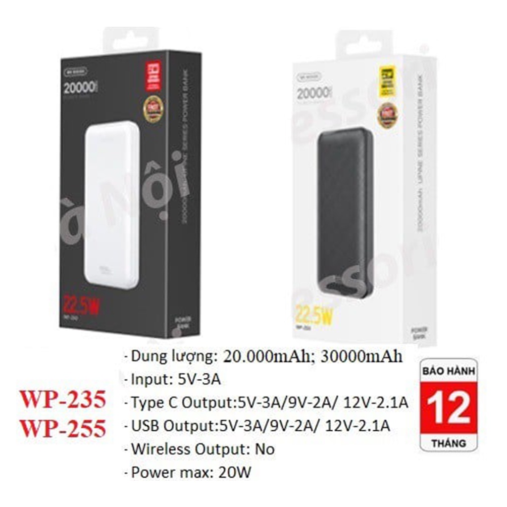 Pin Sạc Dự Phòng chính hãng WK WP 253 / WP 255 , 22,5W / PD 20W, WP 168 chính hãng BH 12 tháng