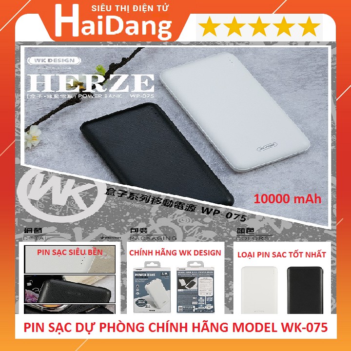 Pin Sạc Dự Phòng Chính Hãng WK Design 10000mAh Model WP-075 siêu bền