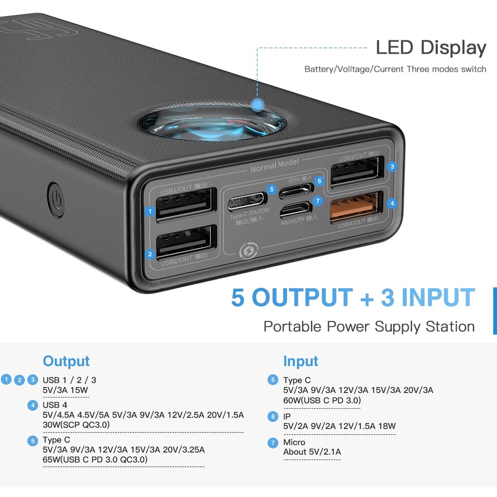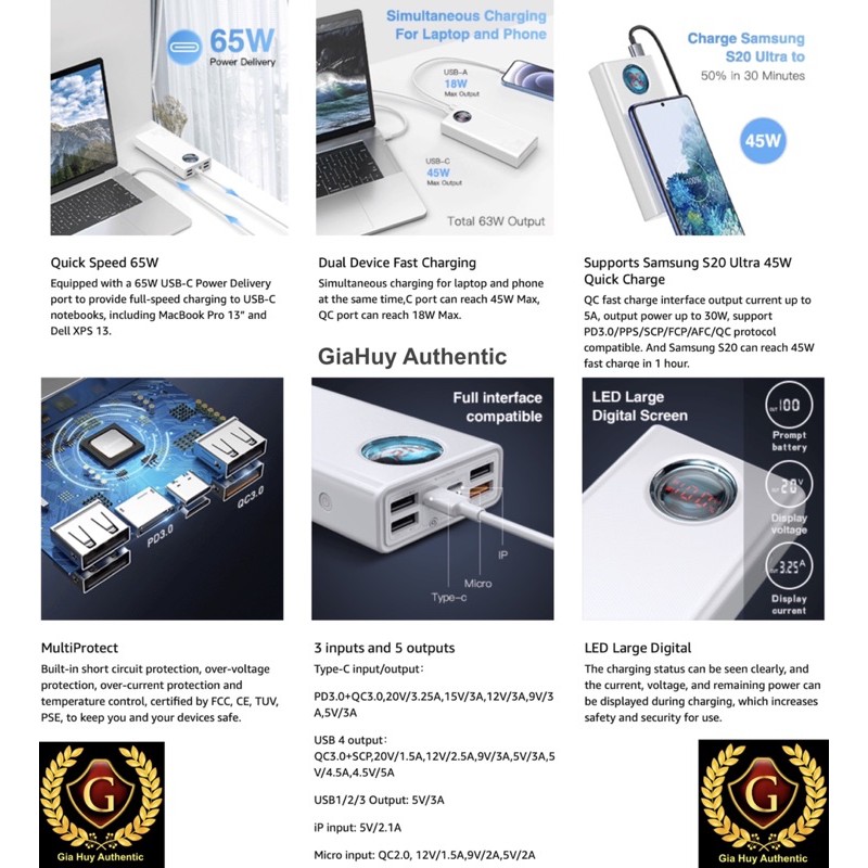 Pin sạc dự phòng cho Macbook Pro, iPhone 13, Note 10+ BASEUS AMBLIGHT DIGITAL DISPLAY BS-30KP365 30000mAh PPS/PD 3.0 65W