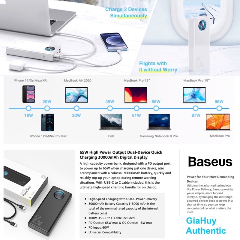 Giới thiệu Pin sạc dự phòng cho Macbook Pro, iPhone 13, Note 10+ BASEUS AMBLIGHT DIGITAL DISPLAY BS-30KP365 30000mAh PPS/PD 3.0 65W
