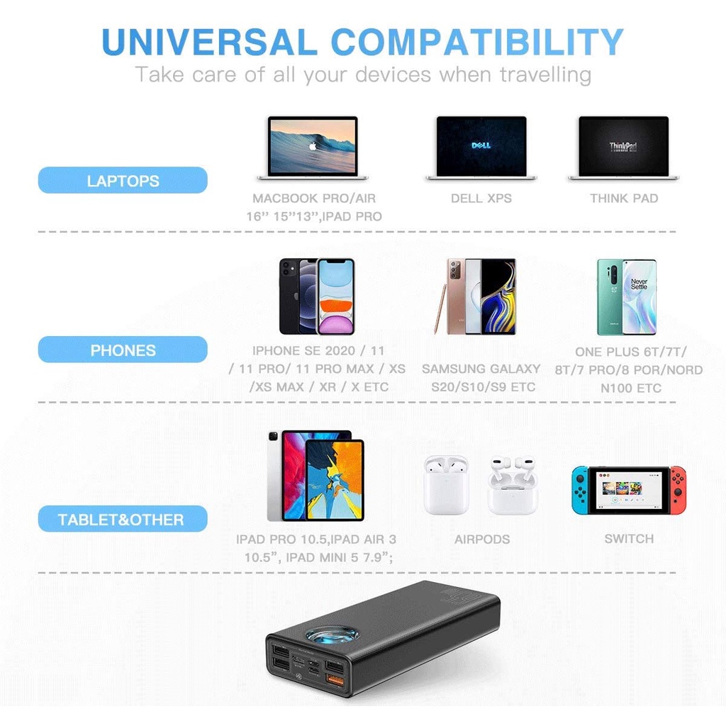 Với dung lượng 30000mah, Pin dự phòng BASEUS BS-30KP365 có thể sạc đầy Laptop của bạn nhanh chóng, chia sẽ cho nhiều người cùng sử dụng, rất thích hợp cho các chuyến công tác, du lịch dài ngày.