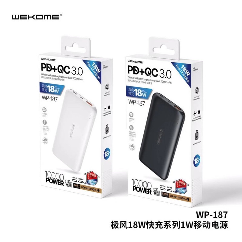 Pin Sạc Dự Phòng Có Hổ Trợ Sạc Nhanh PD 18W Dung Lượng 10.000mAh | 20.000mAh - Hàng Chính Hãng WK DesignMã wp 187 - 10.000mAh