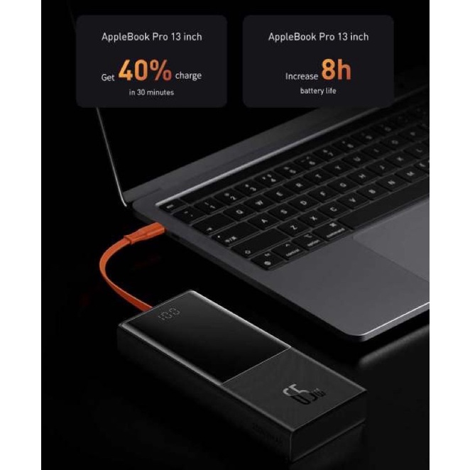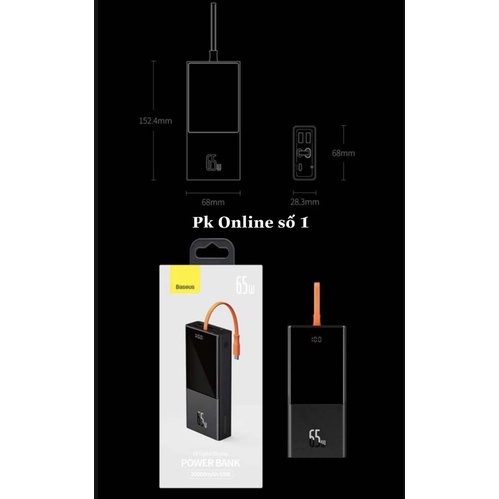 Giới thiệu Pin sạc dự phòng công suất cao 65W 20.000mAh Baseus Digital Display Quick Charge Power Bank,hỗ trơ sạc macbook và mátính