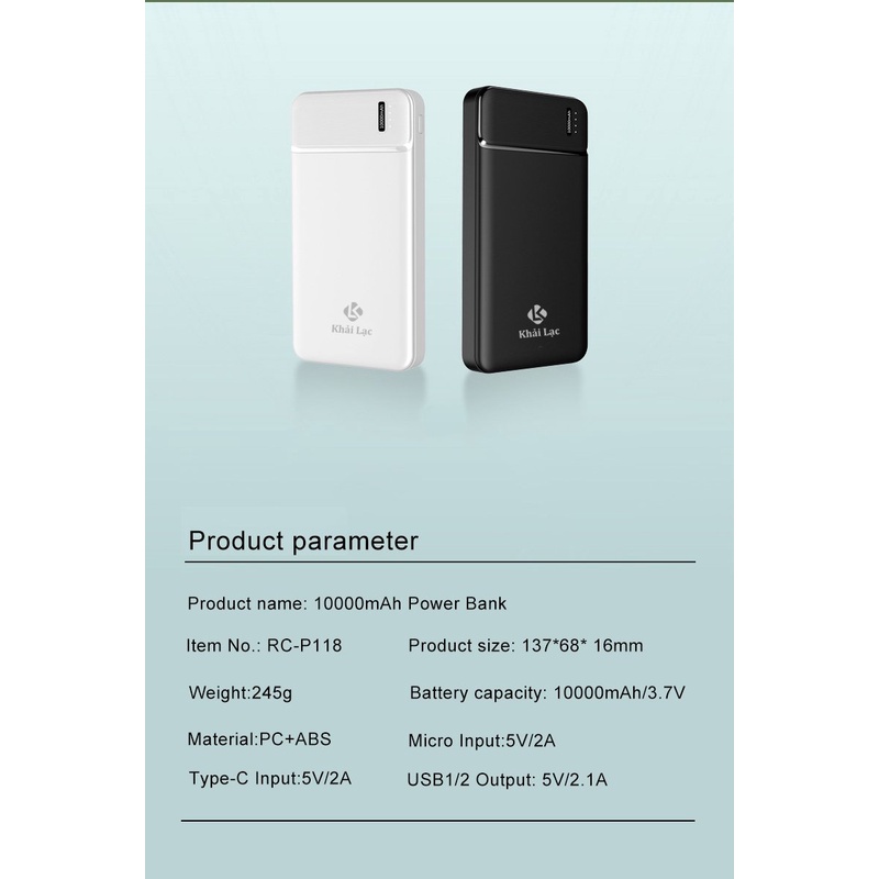 Thương hiệu: Khải Lạc | Xem thêm các sản phẩm Pin sạc dự phòng di động của Khải LạcMô tả ngắn