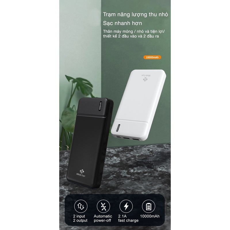 Pin sạc dự phòng đa năng Khải Lạc sạc cùng lúc 2 thiết bị thiết kế nhỏ gọn dành cho tất cả dòng điện thoại