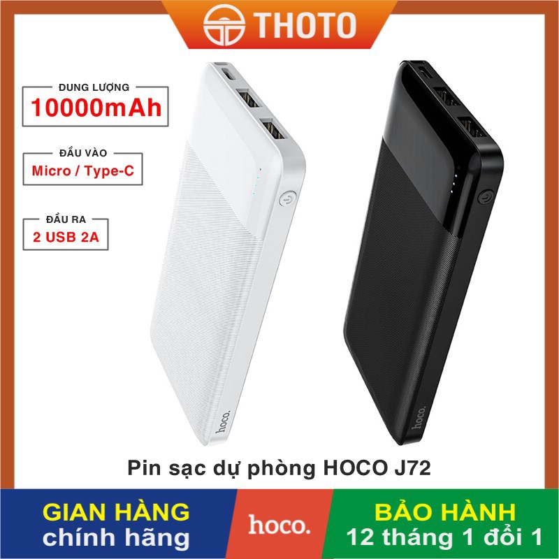 - Pin sạc dự phòng Hoco J72 có dung lượng 10000mAh với thiết kế mỏng gọn, sản phẩm được hoàn thiện tốt, cầm rất chắc tay.