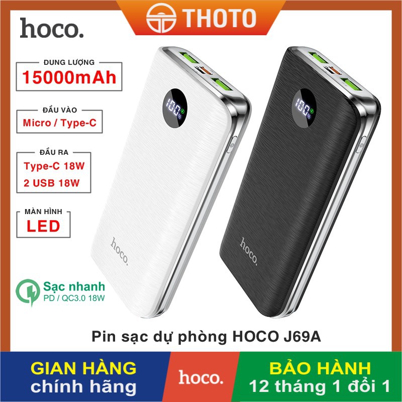 Điện Thoại & Phụ Kiện > Pin sạc dự phòng > 10000 - 20000mAh || Pin sạc dự phòng di động CHÍNH HÃNG HOCO J69A 15000mAh có màn hình LED, đầu ra USB / Type-C hỗ trợ sạc nhanh tới 3A 18WCòn hàng
