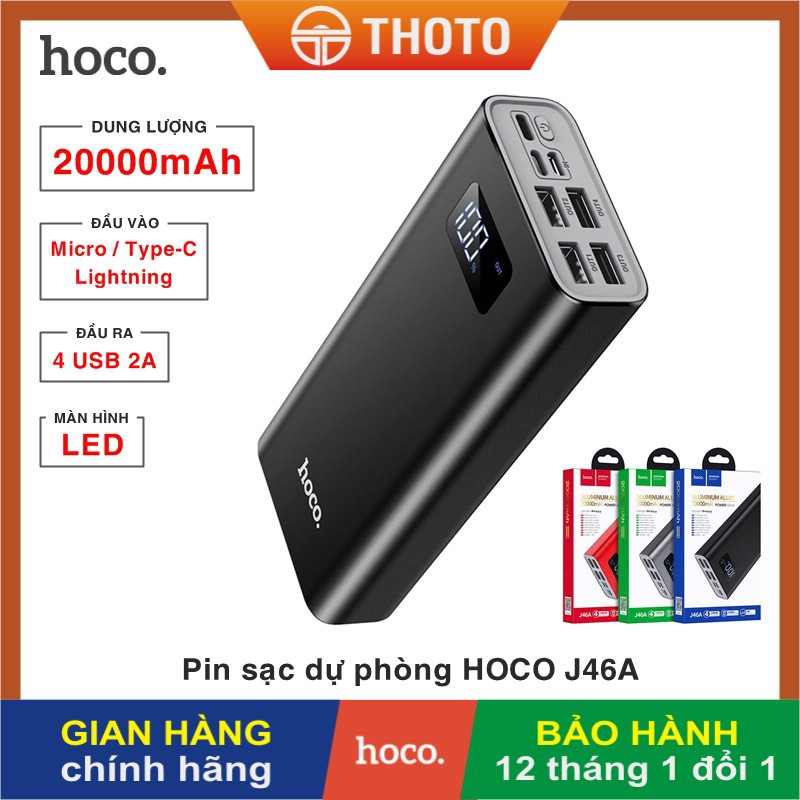 Điện Thoại & Phụ Kiện > Phụ kiện > Sạc dự phòng & Pin > Sạc dự phòng || Pin sạc dự phòng di động HOCO J46A dung lượng cao 20000mAh, đầu ra 4 cổng USB 2A, có màn hình LED - Hàng chính hãngCòn hàng