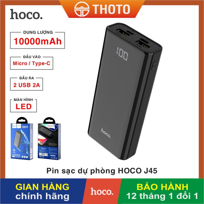 Giới thiệu Pin sạc dự phòng di động HOCO J45 dung lượng 10000mAh đầu ra 2 cổng USB tối đa 2A, có màn hình LED - Hàng chính hãng