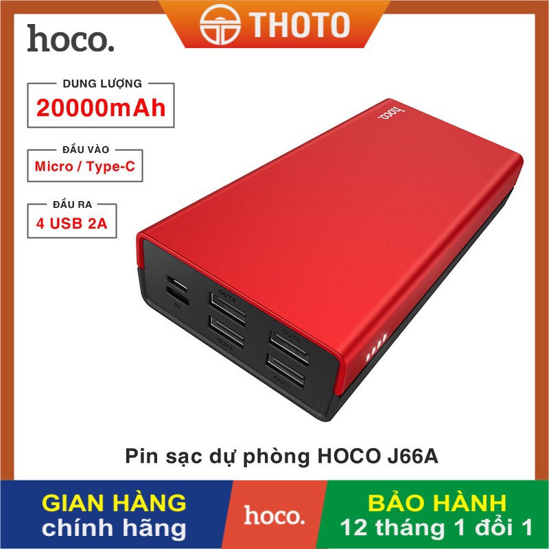 Pin sạc dự phòng di động chính hãng HOCO J66A dung lượng cao 20000mAh, đầu vào Micro / Type-C, đầu ra 4 cổng USB 2A, đèn báo LED✪ THÔNG TIN SẢN PHẨM