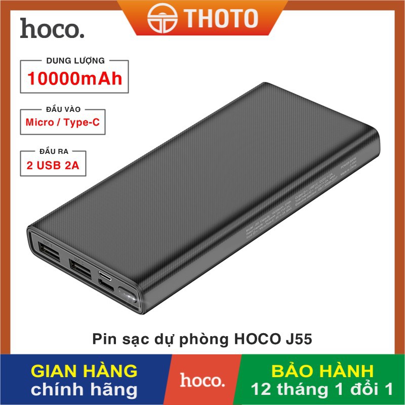 Pin sạc dự phòng di động chính hãng HOCO J55 Neoteric dung lượng 10000mAh công nghệ mới, Đầu ra 2 cổng USB 2A, với đèn báo LED✪ THÔNG TIN SẢN PHẨM