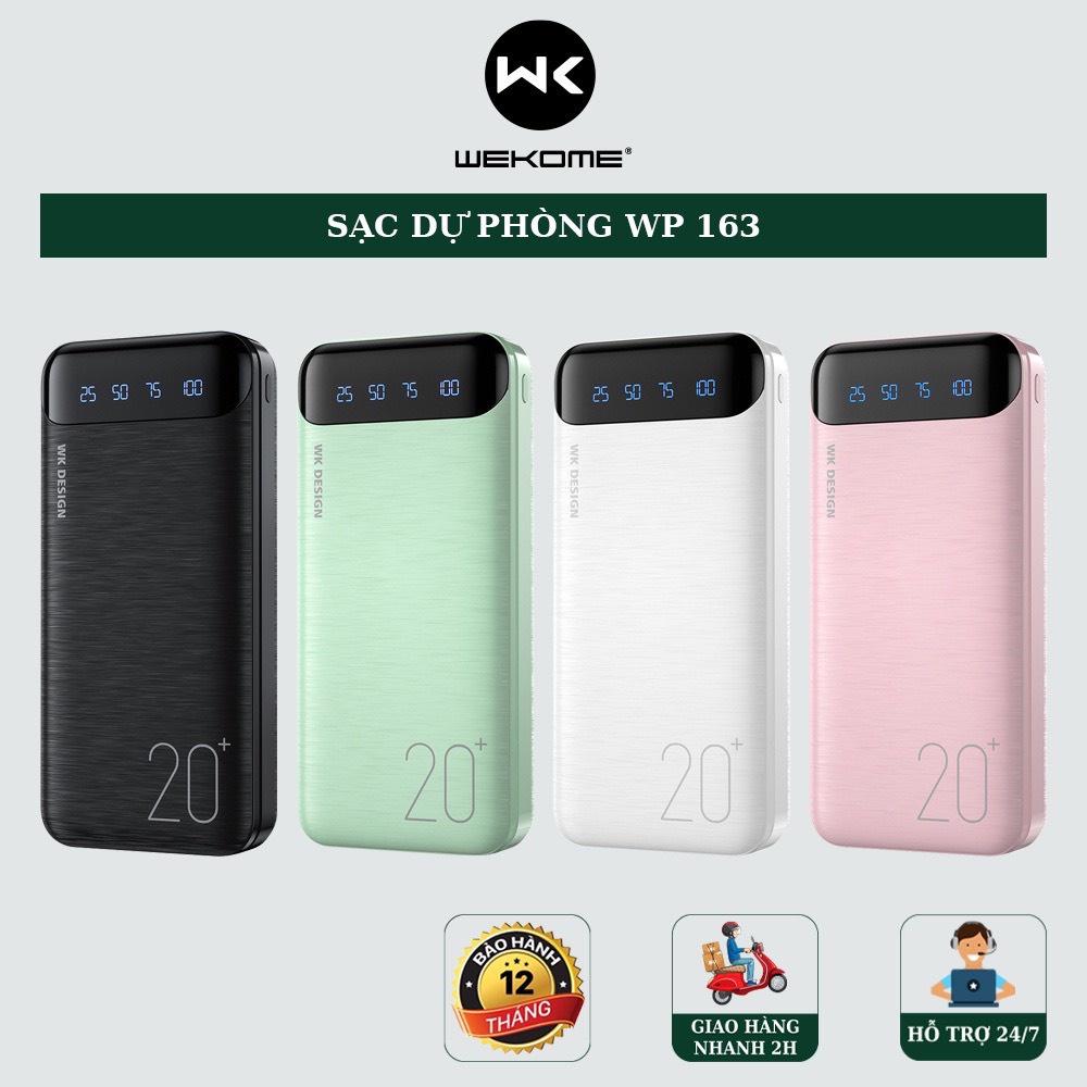 - Sạc dự phòng nhỏ gọn WP-163 được tích hợp pin lithium-polymer có dung lượng lên đến 20000mAh, hỗ trợ sạc đầy pin cho thiết bị di động từ 2 - 3 lần.