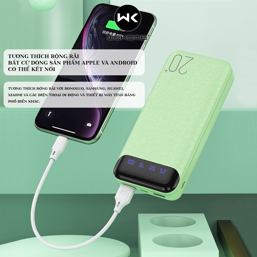 Pin sạc dự phòng dung lượng 20000mAh Wekome WP-163 tích hợp màn hình LED