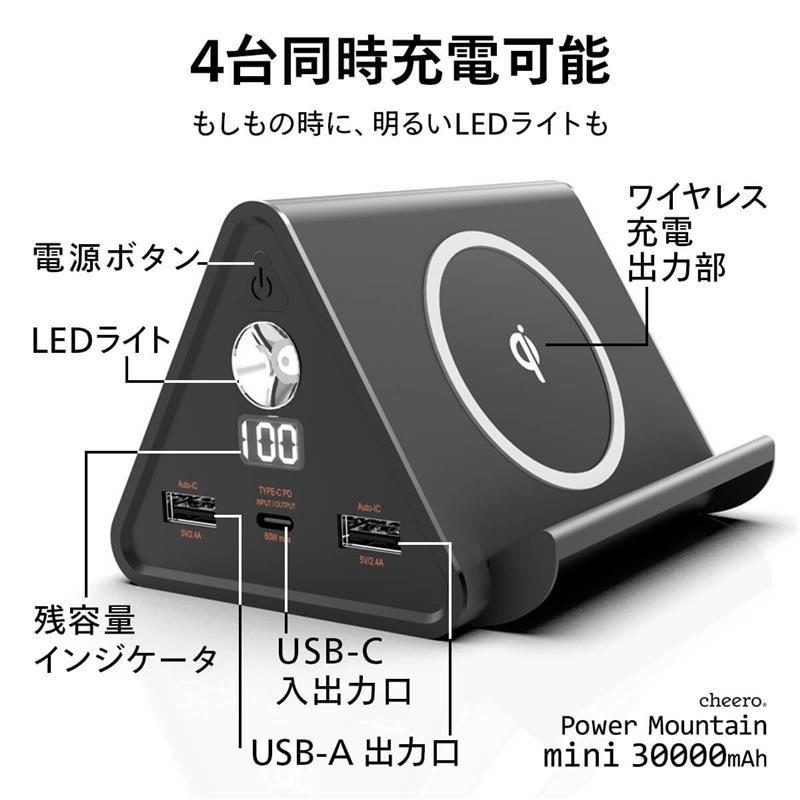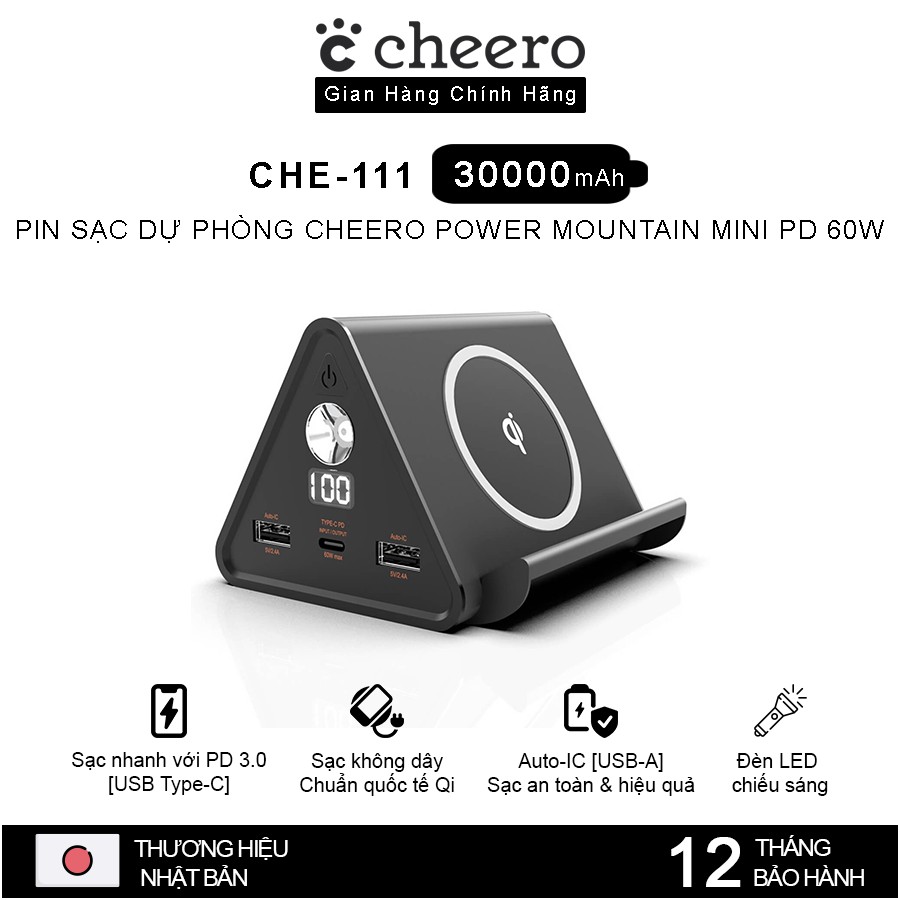 Pin Sạc Dự Phòng Cheero Dung Lượng Cao CHE-111 Mountain Mini 30000mAh Sạc Không Dây - Hàng Chính Hãng