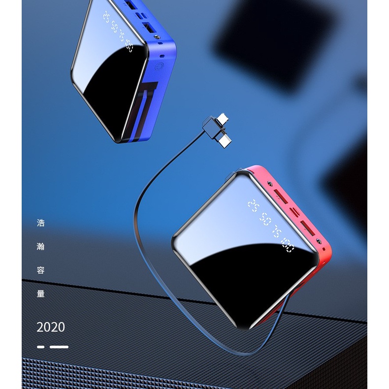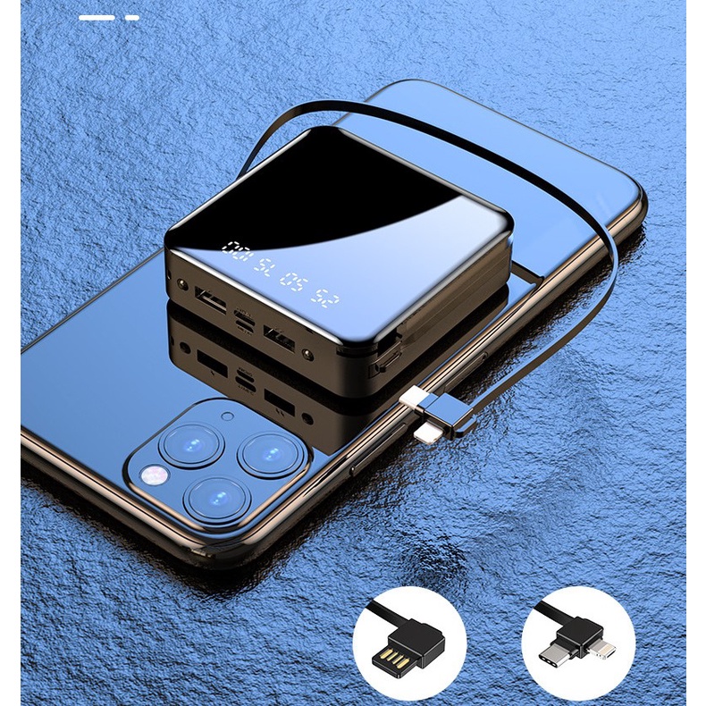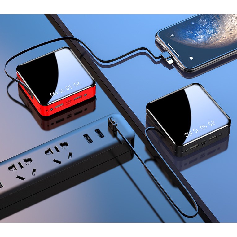 Pin Sạc Dự Phòng E100 Mini 20.000mAh Tích Hợp Sẵn 2 Dây Cáp Sạc Kép