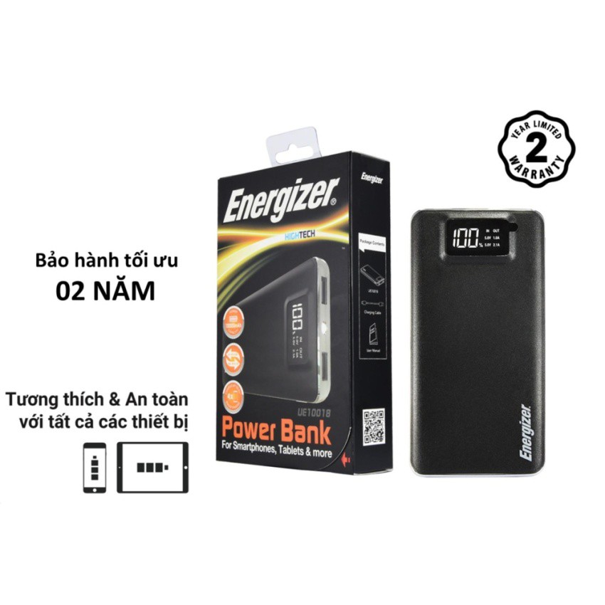Điện Thoại & Phụ Kiện > Pin sạc dự phòng > 5000 - 10000mAh || Pin sạc dự phòng Energizer 10000mAh 2 cổng Output có LCD - UE10018 (Đen)Còn hàng