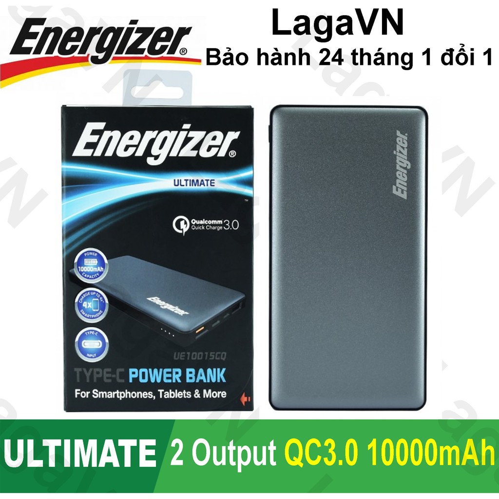 Giới thiệu Pin sạc dự phòng Energizer 10000mAh 2 cổng Output Quick Charge 3.0 - UE10015CQ(Xám)