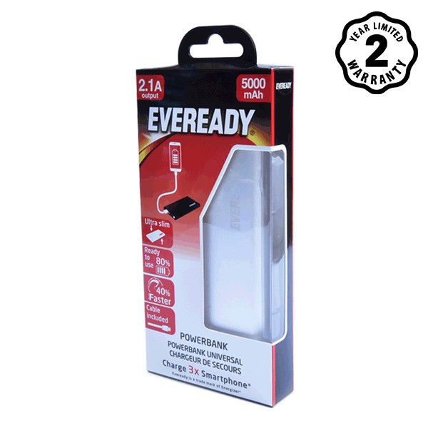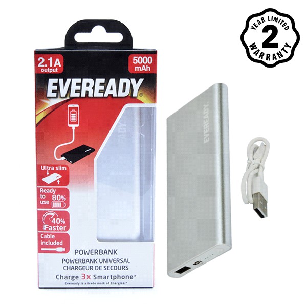 Điện Thoại & Phụ Kiện > Phụ kiện > Sạc dự phòng & Pin > Sạc dự phòng || Pin sạc dự phòng Eveready Energizer 5.000mAh (Silver)Còn hàng