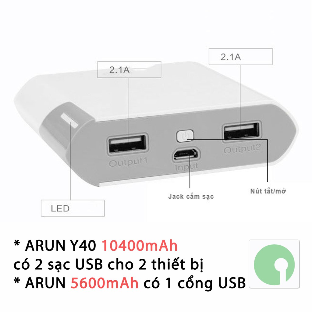 + Pin dự phòng đa năng ARUN 5600Mah/10400Mah chính hãng