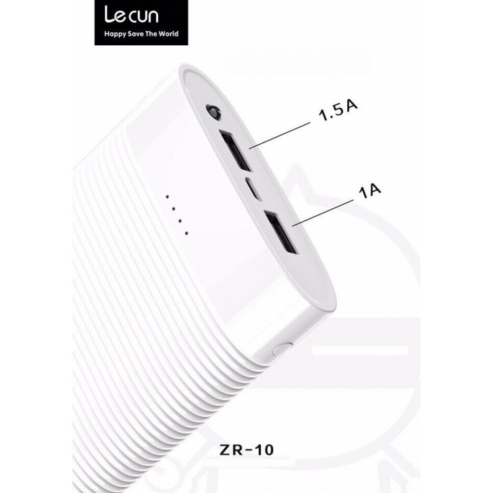 Pin Sạc dự phòng hiệu Lecun mẫu ZR-10 10.000 mAhĐịa chỉ: Số nhà 44 Đường Phạm Thị Tánh (Đường 152 Cao Lỗ cũ) P4 Q8 -- SĐT: 0938.44.86.77 -- Thời gian làm việc: 9h - 19h30 (Từ Thứ 2 - Thứ 7 - Chủ nhật nghĩ)