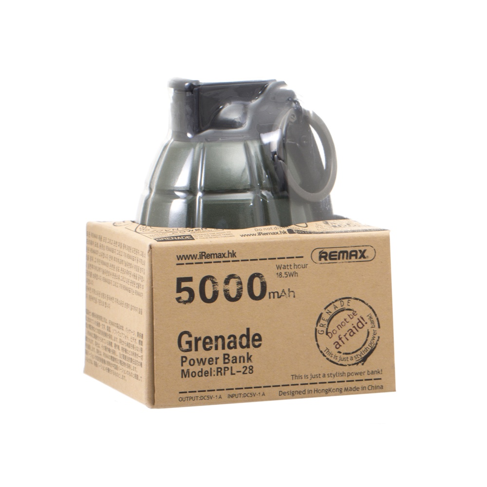 Sự sáng tạo là không ngừng nghỉ, nó không phải là cái gì đó cao sang hay thuộc tầng suy nghĩ xa tầm với, chỉ cần bạn thích, thêm một chút quan sat và cảm nhận thì một sản phẩm tuyệt vời sẽ ra đời như chiếc pin sạc dự phòng hình lựu đạn 5.000mAh Remax RPL - 28 này vậy. Sở hữu thiết kế độc đáo, dành riêng cho những tín đồ yêu thích phong cách quân đội, chiếc pin này hứa hẹn sẽ làm mưa làm gió, thậm chí là có khả năng tạo nên những tình huống dở khóc dở cười cho những người sử dụng nó.