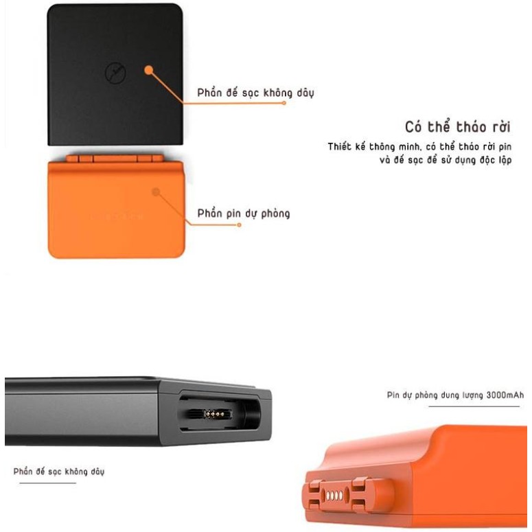 Dung lượng pin 3000mAh có thể tháo rời khỏi cổng sạc