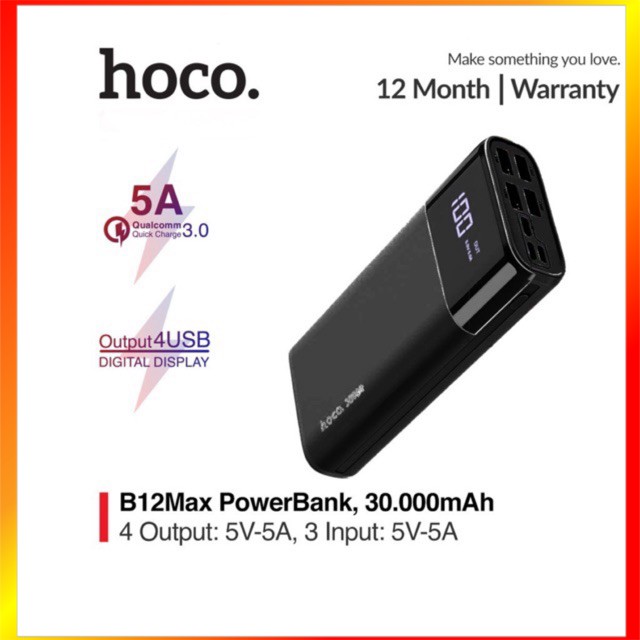 - Pin Sạc Dự Phòng Hoco B12 Max - Dung Lượng 30.000 mAh ( 4 cổng USB , Hỗ trợ sạc nhanh 5A Max )