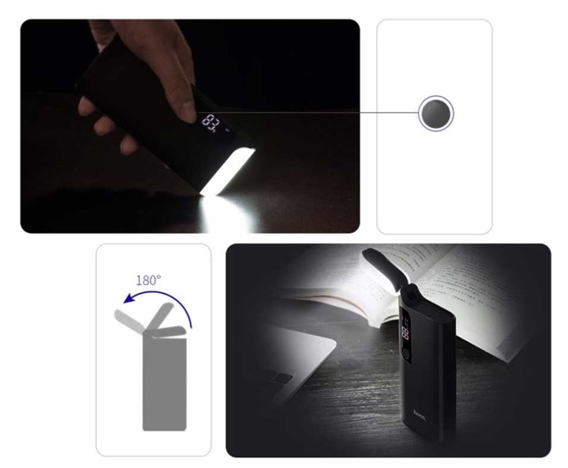 - Điểm đặc biệt nổi bật ở pin dự phòng Hoco B27 đó là được trang bị một đèn LED cực sáng ở tại đầu của viên pin.Thiết kế này vừa đem lại sự độc đáo, cao cấp hơn cho B27 vừa có thể giúp bạn dễ dàng hoạt động trong điều kiện thiết ánh sáng, ngay cả việc đọc sách cũng ko làm khó bạn. Cách sử dụng rất đơn giản bạn chỉ cần xoay đèn một góc 180 độ là có thể sử dụng
