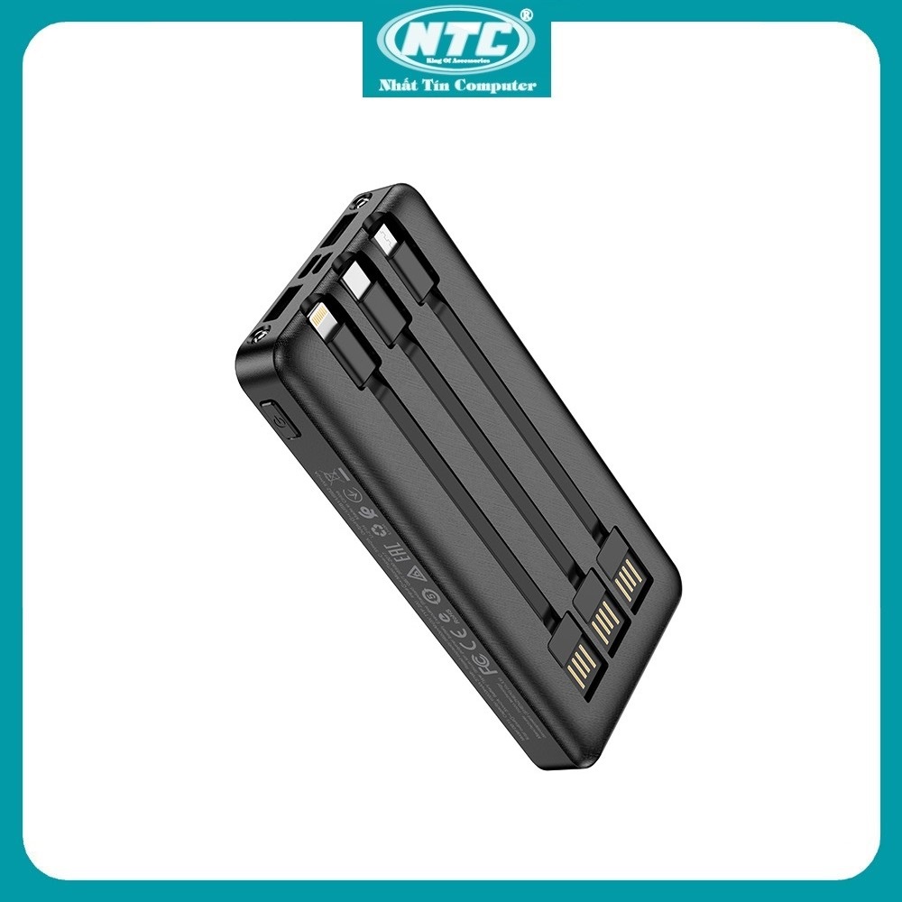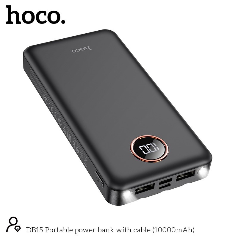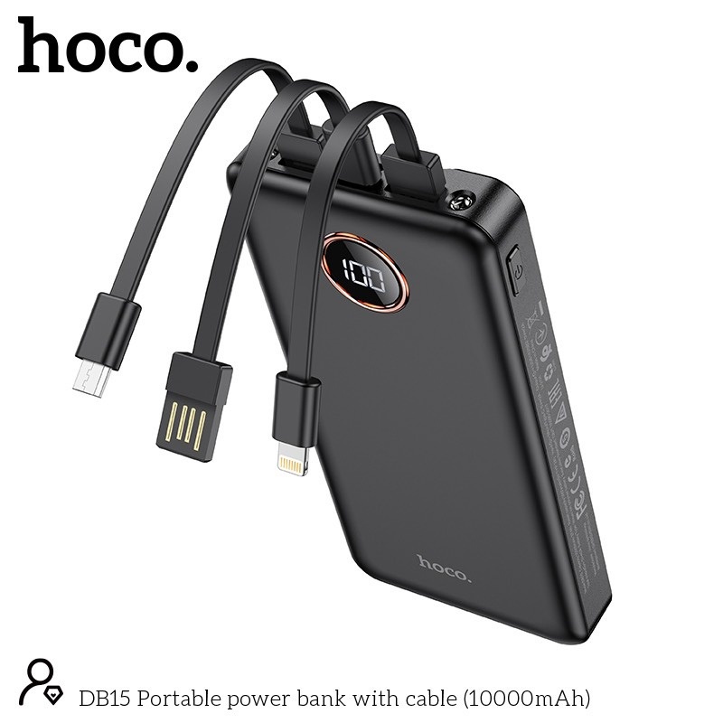 Pin sạc dự phòng Hoco DB15 10000mAh 2 input, 2 output, kèm 3 cáp sạc, chức năng đèn pin (Đen) - Nhất Tín Computer