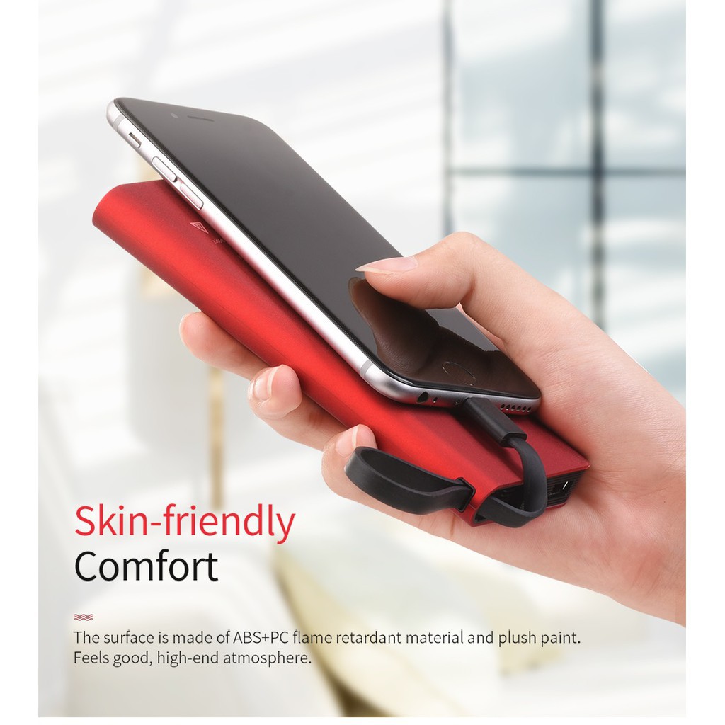 - Đặc điểm: Tích hợp sẵn 1 trong 3 loại đầu sạc mà các dòng điện thoại đang sử dụng: Lightning cho Iphone, Ipad, Micro USB cho Samsung, LG, Oppo, Xiaomi... và Type-C cho các dòng điện thoại đời mới nhất của các hãng. Dây dài 12cm, có thể làm dây móc để cầm tiện dụng. Dung lượng 10000mAh có thể sạc đầy được 2,3 lần dầy iPhone 7 Plus (lưu ý quá trình sạc có tiêu hao năng lượng nên sử dụng thực tế đạt hiệu suất 70-80%). Có kèm thêm 1 cổng USB để dùng cho các điện thoại thứ 2 hoặc điện thoại không cùng đầu tích hợp vào pin.