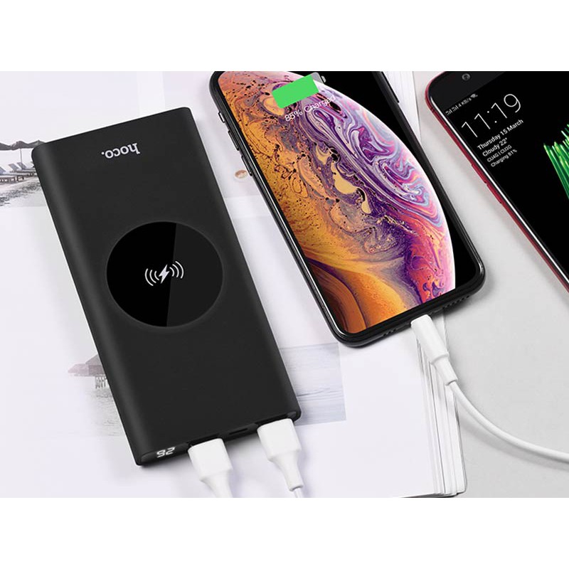 pin sạc dự phòng không dây Hoco J37 Wisdom 10000mAh 2 cổng sạc (2 màu) - Hàng chính hãngSạc dự phòng 2 cổng USB Hoco J37 có tích hợp tính năng sạc không dây ở mặt trên, cho phép sạc nhiều thiết bị một lúc, không phải mang theo dây sạc vô cùng tiện lợi, ngoài ra sản phẩm còn hỗ trợ công nghệ sạc nhanh (chứ không phải là Quick Charge 2.0/3.0) với 2 cổng USB 2A