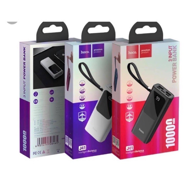 ✔FREESHIP✔Pin sạc dự phòng Hoco J41 10000mAh-3 Cổng sạc-nhỏ gọn-đèn LED-Sạc nhanh cho IPhone Samsung Huawei Xiaomi Oppo