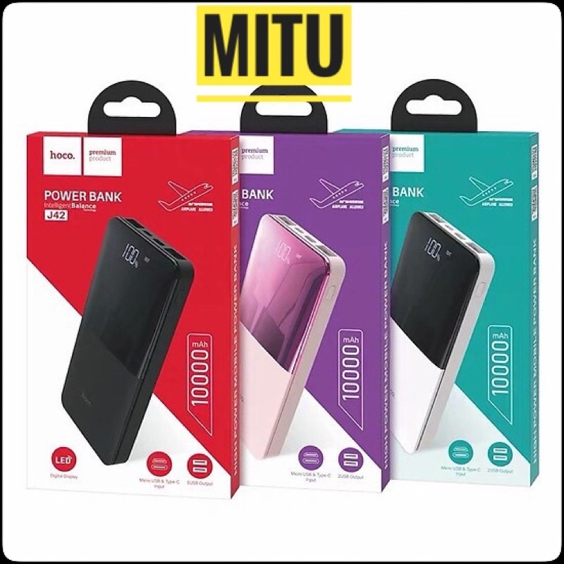 Điện Thoại & Phụ Kiện > Phụ kiện > Sạc dự phòng & Pin > Sạc dự phòng || Pin sạc dự phòng Hoco J42 10.000 mAh 3 cổng input, 2 cổng output max 2A, màn hình LED - CHÍNH HÃNGCòn hàng