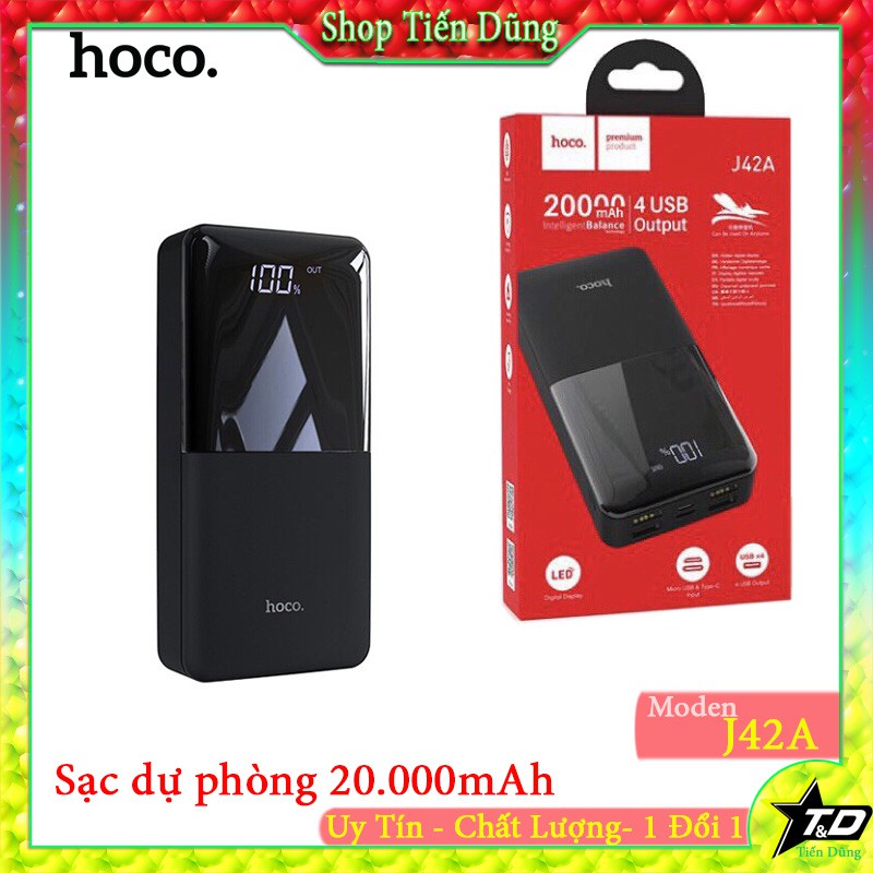 Pin sạc dự phòng Hoco J42A High power 20000mAh 2 cổng input / 4 cổng output.LƯU Ý : Shop có phân loại dung lượng 10.000 và 20.000mah khách hàng chọn đúng dung lượng