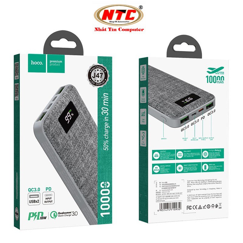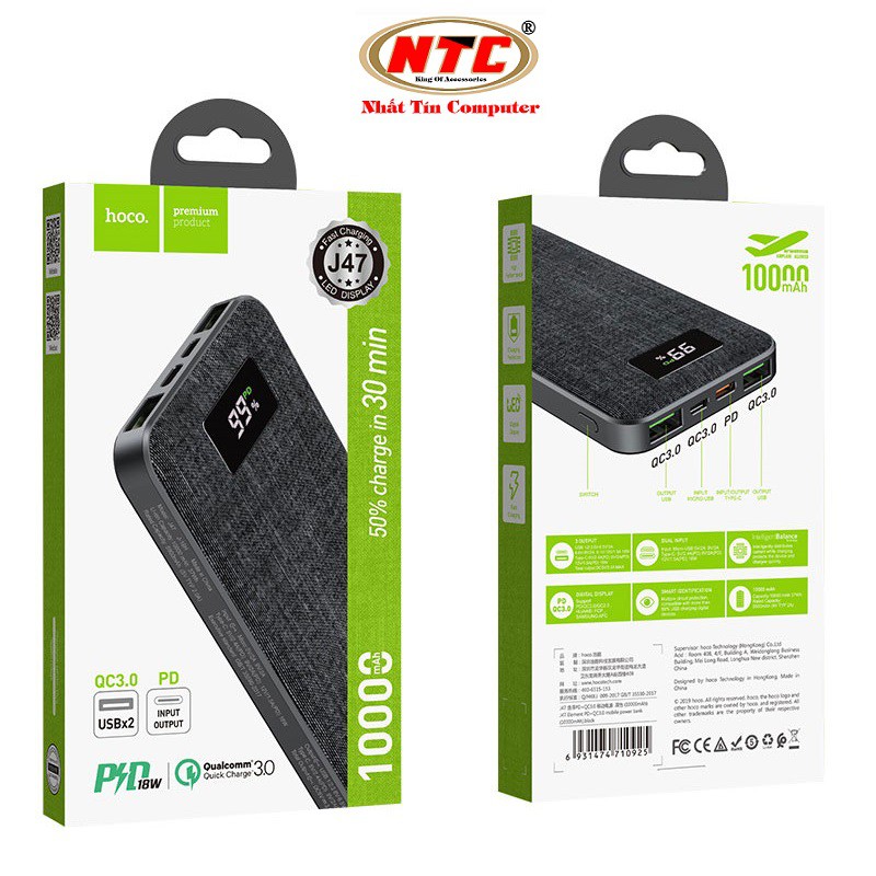 Giới thiệu Pin sạc dự phòng Hoco J47 10000mAh lõi Polymer, 2 cổng sạc nhanh QC3.0 và 1 cổng TypeC PD18W