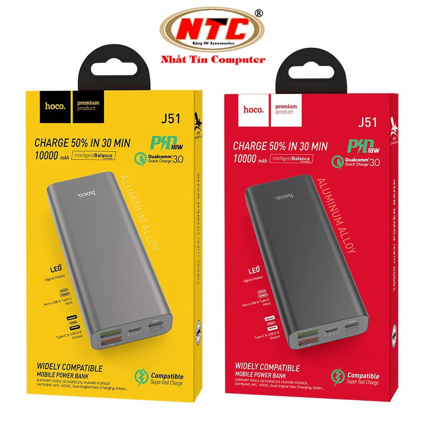 Giới thiệu Pin sạc dự phòng Hoco J51 10000mAh lõi Li-polymer, input/output QC3.0 và PD18W TypeC
