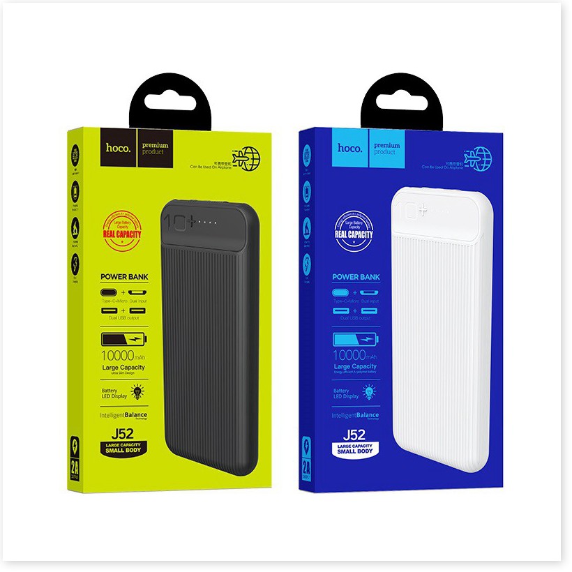 - Pin sạc dự phòng Hoco J52 2 cổng ra USB dung lượng 10000mAh có đèn LED hiện thị pin