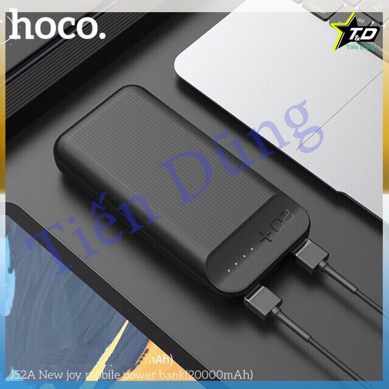 Pin sạc dự phòng Hoco J52 và J52A có 2 lựa chọn dòng 10.000mAh và 20.000mah có đèn led báo dung lượng pin và 2 cổng ra
