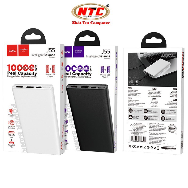 Điện Thoại & Phụ Kiện > Pin sạc dự phòng > 5000 - 10000mAh || Pin sạc dự phòng Hoco J55 Neoteric mobile 10000mAh lõi Li-Polymer 2 cổng sạc Input/Output - Hàng chính hãngCòn hàng