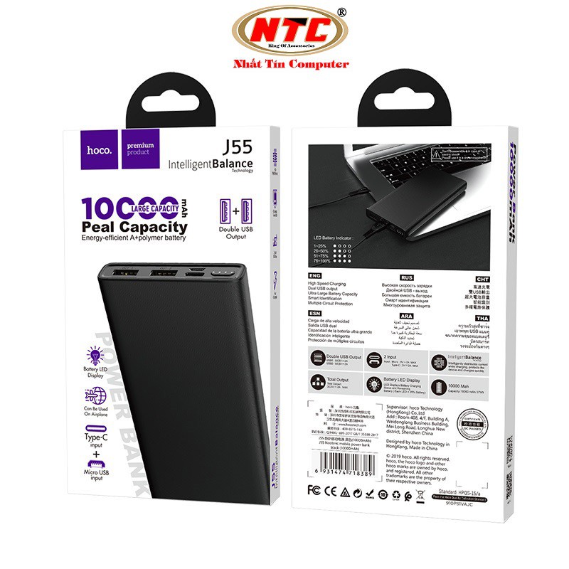Pin sạc dự phòng Hoco J55 Neoteric mobile 10000mAh lõi Li-Polymer 2 cổng sạc Input/Output - Hàng chính hãng