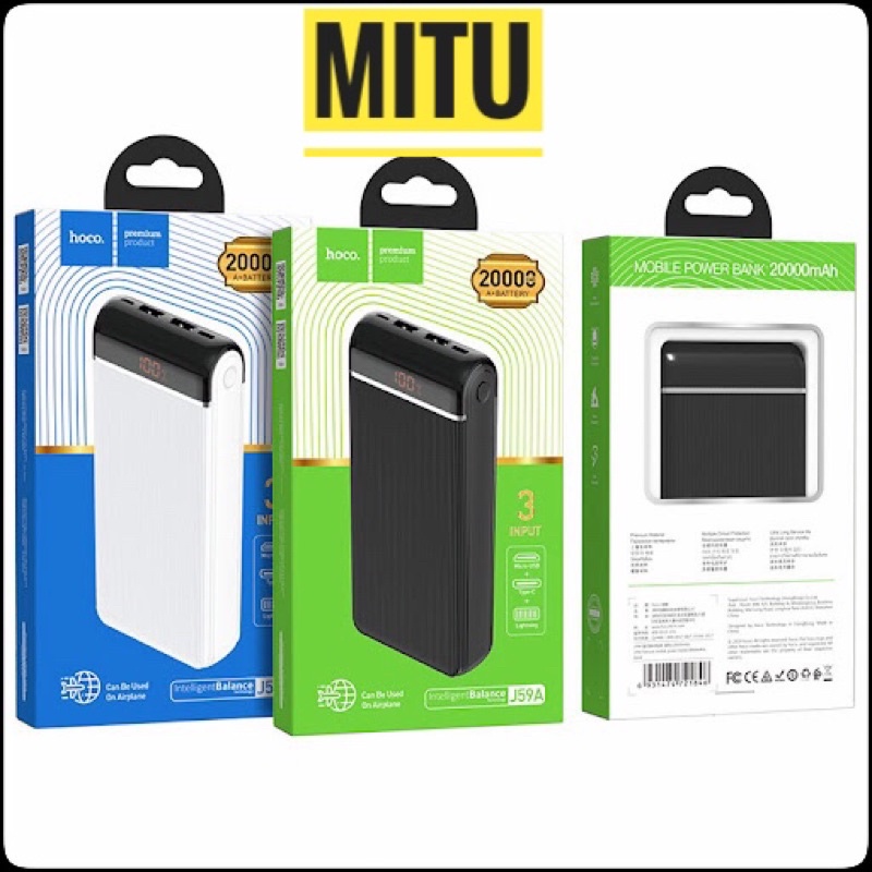 Điện Thoại & Phụ Kiện > Phụ kiện > Sạc dự phòng & Pin > Sạc dự phòng || Pin sạc dự phòng Hoco J59A 20.000 mAh 3 cổng input, 2 cổng output max 2A - CHÍNH HÃNGCòn hàng