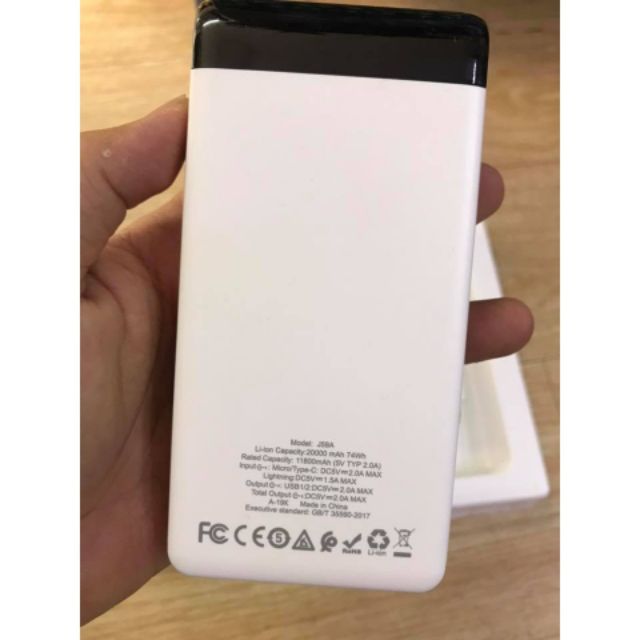 1. Dung lượng: 20000mAh, 74Wh. Dung lượng định mức: 11800mAh (5V TYP 2A).