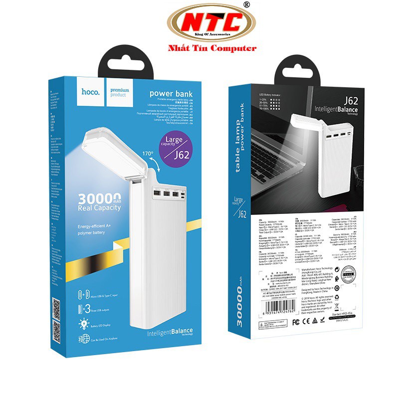 Điện Thoại & Phụ Kiện > Pin sạc dự phòng > >20000mAh || Pin sạc dự phòng Hoco J62 Jove 30000mAh 2 cổng input, 3 cổng output, tích hợp đèn pin siêu sáng - Hàng chính hãngCòn hàng