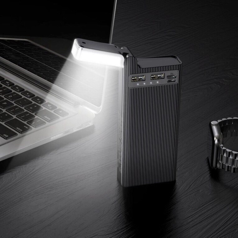 Pin sạc dự phòng Hoco J62A đèn pin đọc sách, 2 cổng ra, tích điện 10000mAh🍀 Sạc dự phòng Hoco J62A dung lượng 10000mAh, đặc biệt có thêm đèn LED để đọc sách, công suất tiêu thụ, tiêu hao khi sạc đạt 70%, có thể sạc đầy từ 2-2,5 lần cho điện thoại dung lượng pin 3000mAh (như iPhone XS Max hoặc Samsung S10 Plus) tích hợp 2 cổng ra USB, 2 cổng vào MicroUSB và Type C để cắm điện cho SDP này, trên J62A có đèn LED hiển thị vạch pin. J62A sạc cho tất cả các thiết bị điện thoại Smartphone và máy tính bảng.