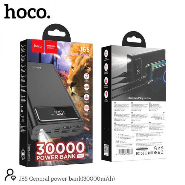 Pin sạc dự phòng Hoco J65 General 30000mAh 3 cổng input, 4 cổng output, tích hợp đèn pin, màn hình LCD - Hãng phân phối chính thứcPin sạc Hoco J65 hỗ trợ 4 đầu ra USB, cho phép người dùng sạc cùng lúc 4 thiết bị, thích hợp dùng cho những người đam mê công nghệ, sở hữu nhiều thiết bị công nghệ, giúp sạc các thiết bị nhanh và ổn định hơn.