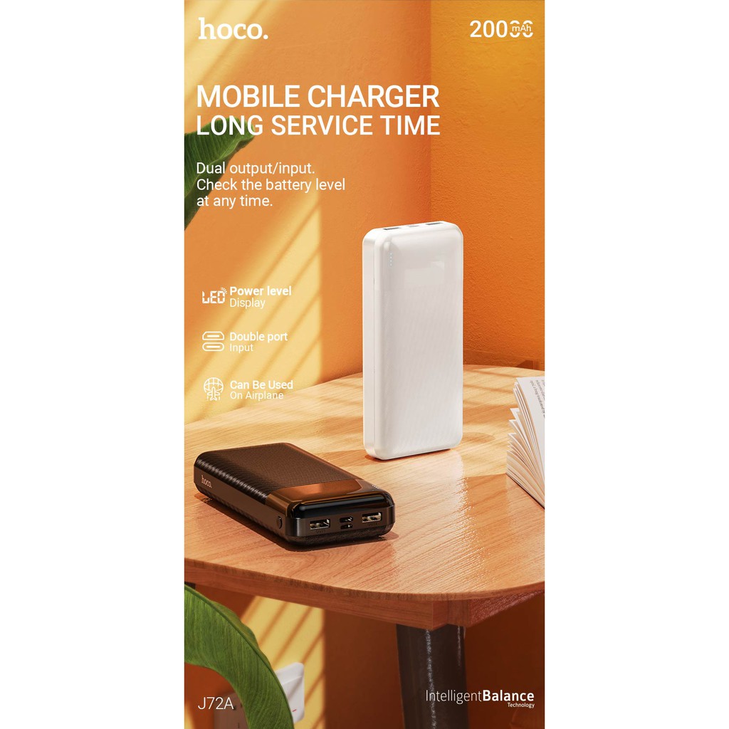 Pin sạc dự phòng Hoco J72A Easy travel 20000mAh 2 cổng Input/Output max 2A - Hàng chính hãngMô tả sản phẩm: