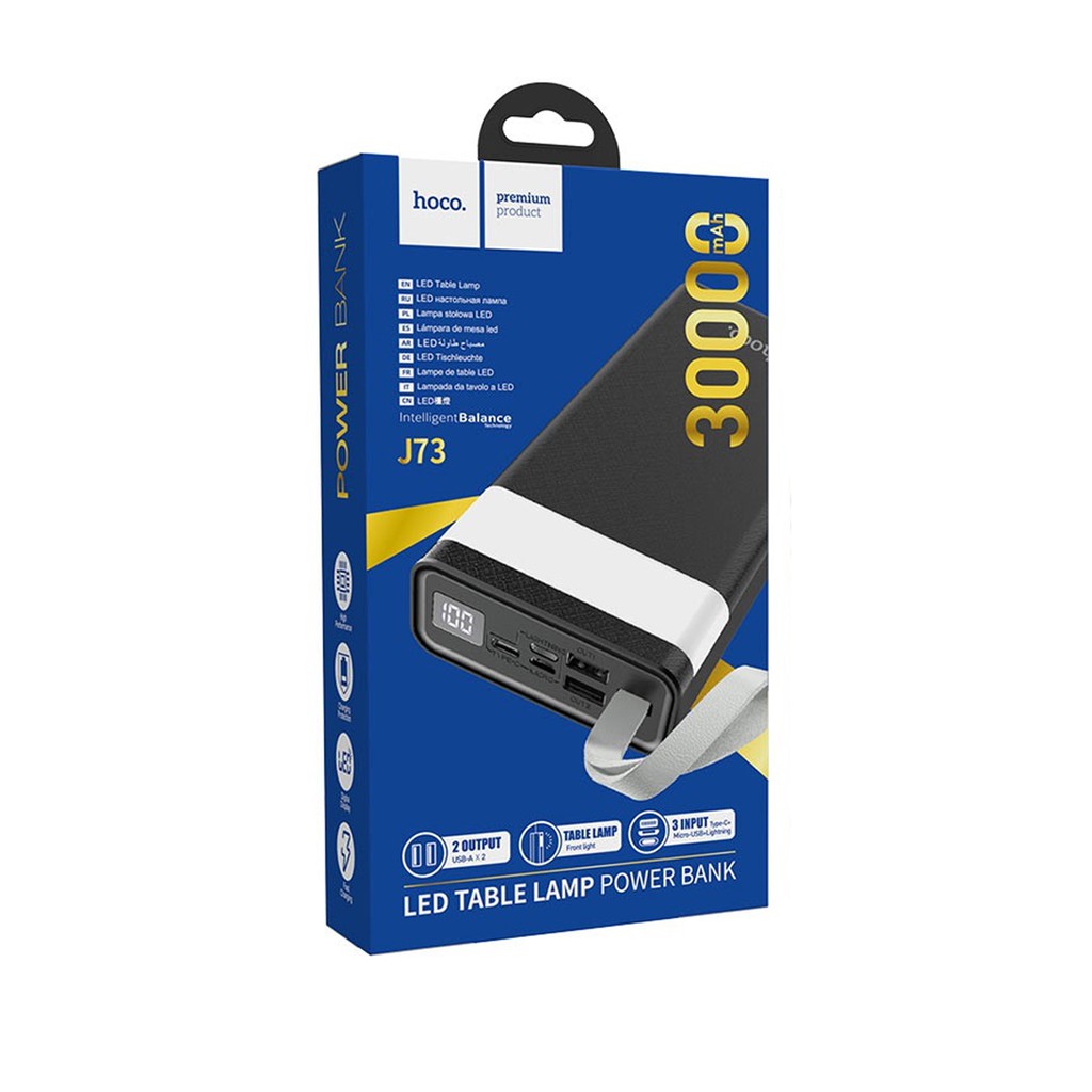 Pin sạc dự phòng Hoco J73 dung lượng 30000mAh, sạc nhanh 5V/2A Max, 2 cổng ouput, 3 cổng input, tích hợp đèn chiếu sáng