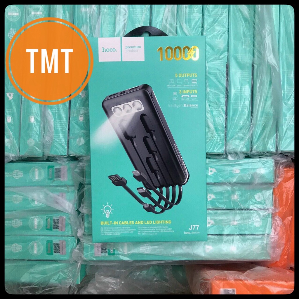 Giới thiệu Pin sạc dự phòng Hoco J77 10000mAh màn hình LED, 2 cổng USB + 3 dây sạc, có đèn pin - CHÍNH HÃNG