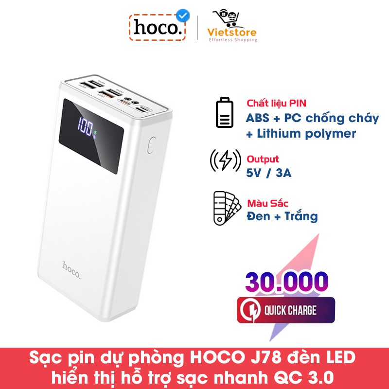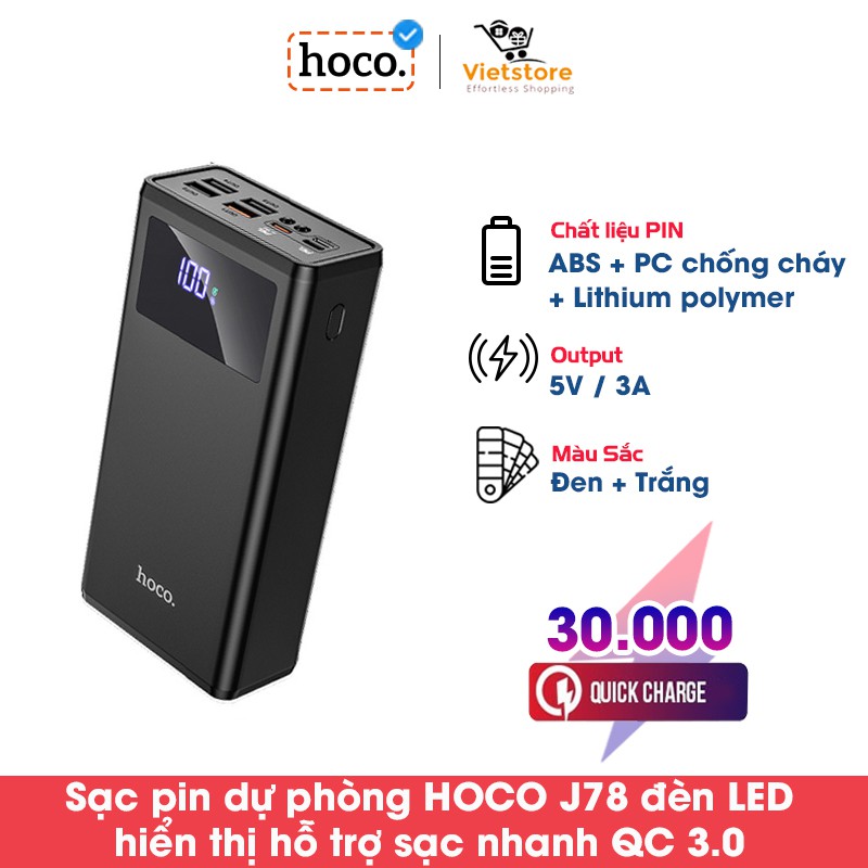 Điện Thoại & Phụ Kiện > Phụ kiện > Sạc dự phòng & Pin > Sạc dự phòng || Pin Sạc Dự Phòng Hoco J78 Dung Lượng Lớn 30000mAh Đèn LED Hiển Thị Pin Hỗ Trợ Sạc Nhanh 22.5W PD3.0 QC3.0/QC2.0Còn hàng